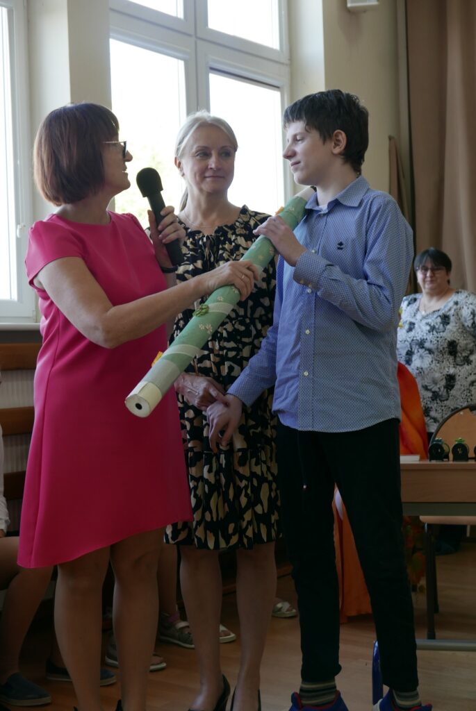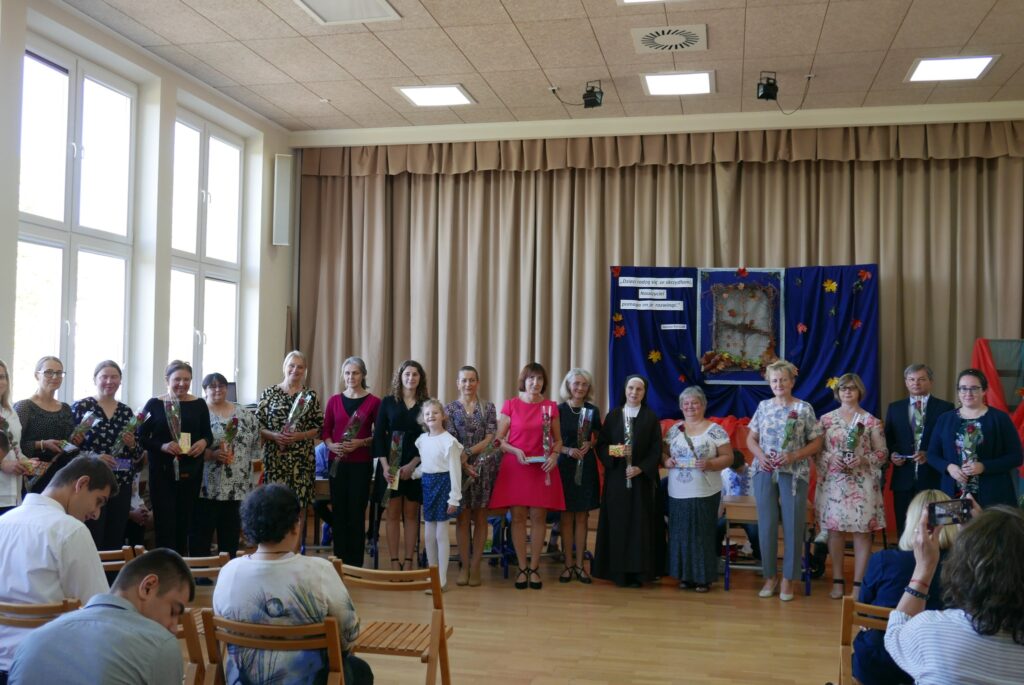 W dniu 14 października obchodziliśmy w naszym Ośrodku Dzień Edukacji Narodowej. Świętowanie rozpoczęliśmy w kaplicy Mszą Świętą sprawowaną przez ks. Szymona Janiczka w intencji nauczycieli, wychowawców i wszystkich pracowników Ośrodka. W dalszej części świętowania odbyło się ślubowanie i pasowanie uczniów kl. I i nowo przybyłych uczniów przez panią Dyrektor Szkoły. Uczniowie zaprezentowali artystyczny program instrumentalno-sceniczny pt. ,,Co przyniesie JESIEŃ ?” Następnie uczniowie i rodzice wręczyli Nauczycielom róże i złożyli piękne i pełne wdzięczności życzenia. Uwieńczeniem uroczystości było wspólne spotkanie przy torcie okolicznościowym przygotowanym przez Mamę Kamili G. na tę uroczystość. Wszystkim Rodzicom dziękujemy za wspólne świętowanie.