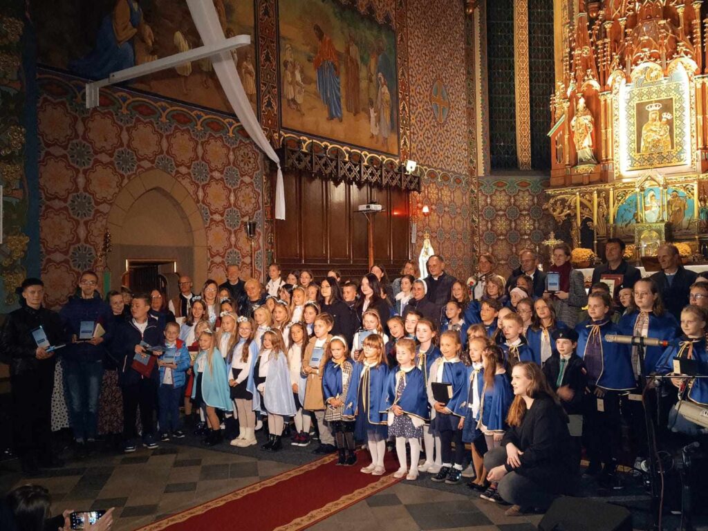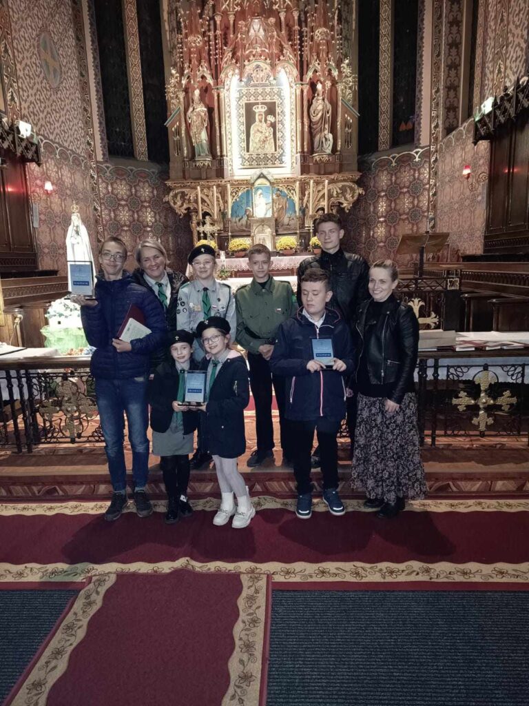 W sobotę 28. 10 odbył się II Przegląd Pieśni Maryjnych w Parafii św. Marii Magdaleny. W tym wydarzeniu wzięli udział uczniowie naszej szkoły: Jakub Smyrak zaprezentował się w piosence pt. „ Bywają chwile”, którą zaśpiewał i zagrał na keyboardzie, a akompaniował mu na gitarze Tymoteusz Kwaśniowski. W ramach współpracy z I Wielopoziomową Drużyną Harcerską im. Danuty Siedzikówny ”Inki„ Kamil Mszański i Jakub Smyrak zaśpiewali z harcerzami i zuchami pieśń „Maryjo Królowo Polski”. Było pięknie i wzruszająco.