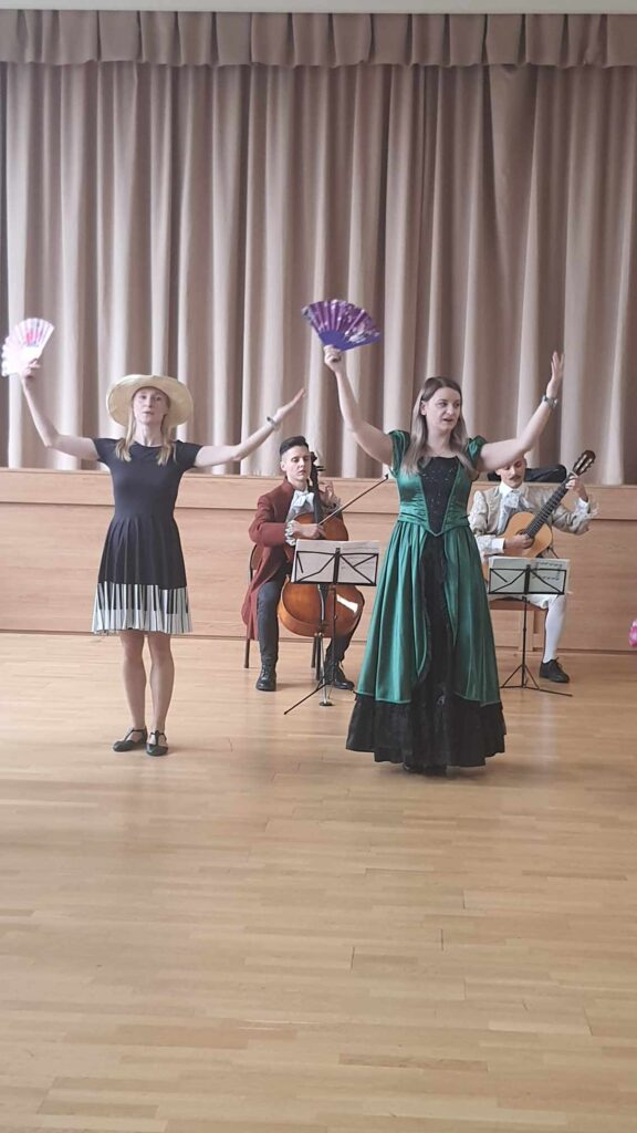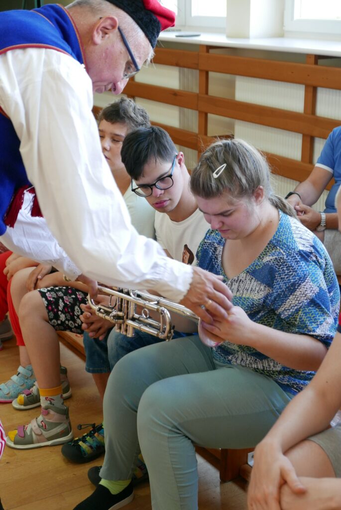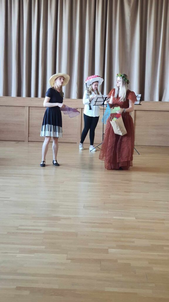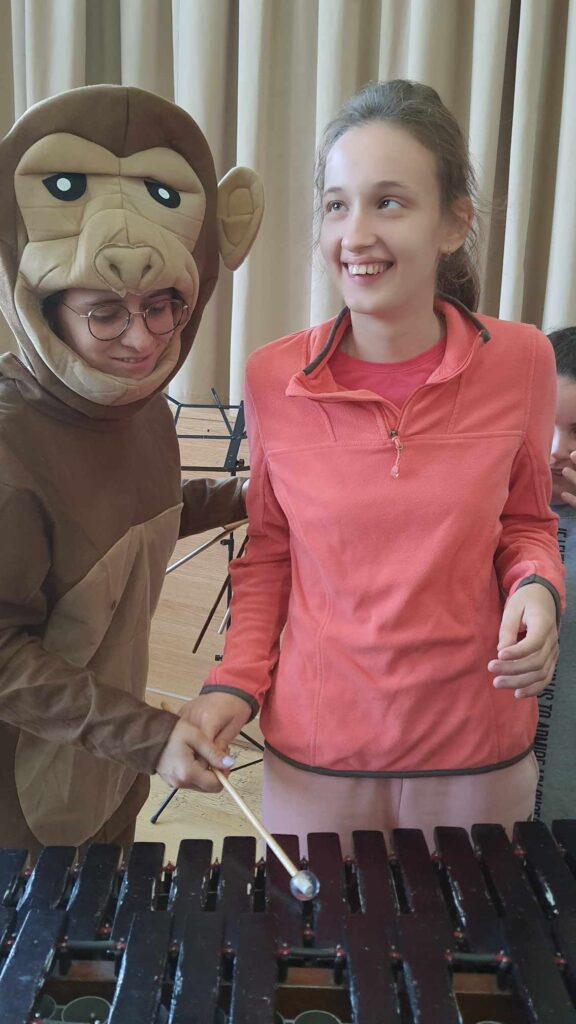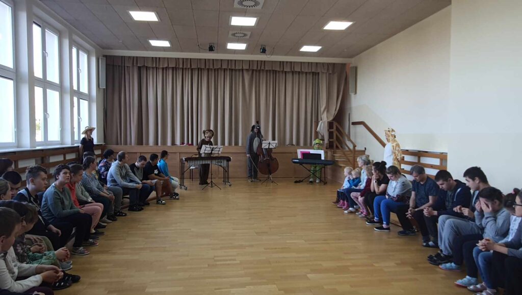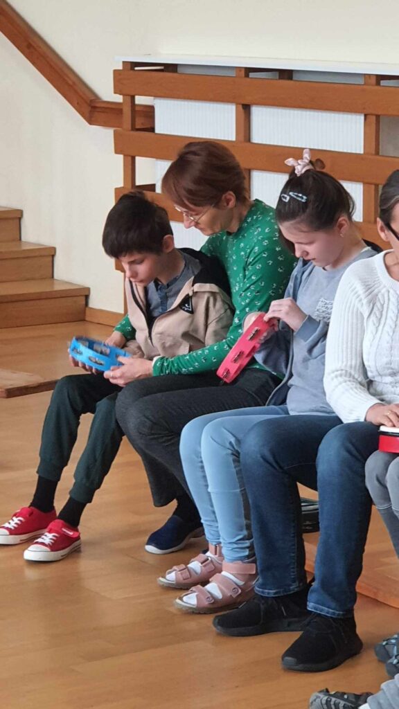 Pani Melodia, każdorazowo towarzyszyła uczniom naszego ośrodka w zajęciach. Zabierała ich w niezwykłe muzyczne podróże. Zapoznawała uczniów z instrumentami, uczyła tańców, wspólnie z nimi bawiła się, grała i śpiewała. Towarzyszyli jej specjalni goście, na kolejnych spotkaniach to: Pani Jarzębina, Pani Sarabanda, Pani Kropelka i Pani Śnieżynka. Utwory wykonywane podczas spotkań były również dobierane tak, by tworzyły spójną całość z resztą aktywności. To przeboje muzyki klasycznej, utwory znane i lubiane, przyjazne dzieciom, rozbudzające w nich pozytywne emocje. Podczas zajęć pojawiały się też elementy improwizacji instrumentalnej, która miała na celu zachęcenie uczniów do własnej improwizacji za pomocą ruchów, gestów czy gestodźwięków. Wspólne muzykowanie ośmielało dzieci, wzmacniało ich społeczne umiejętności i ułatwiało integrację. Ponadto, pomagało pokonywać lęk i odreagowywać negatywne emocje. Tworzyło pozytywną atmosferę w grupie, a także budowało głębsze relacje z opiekunami.