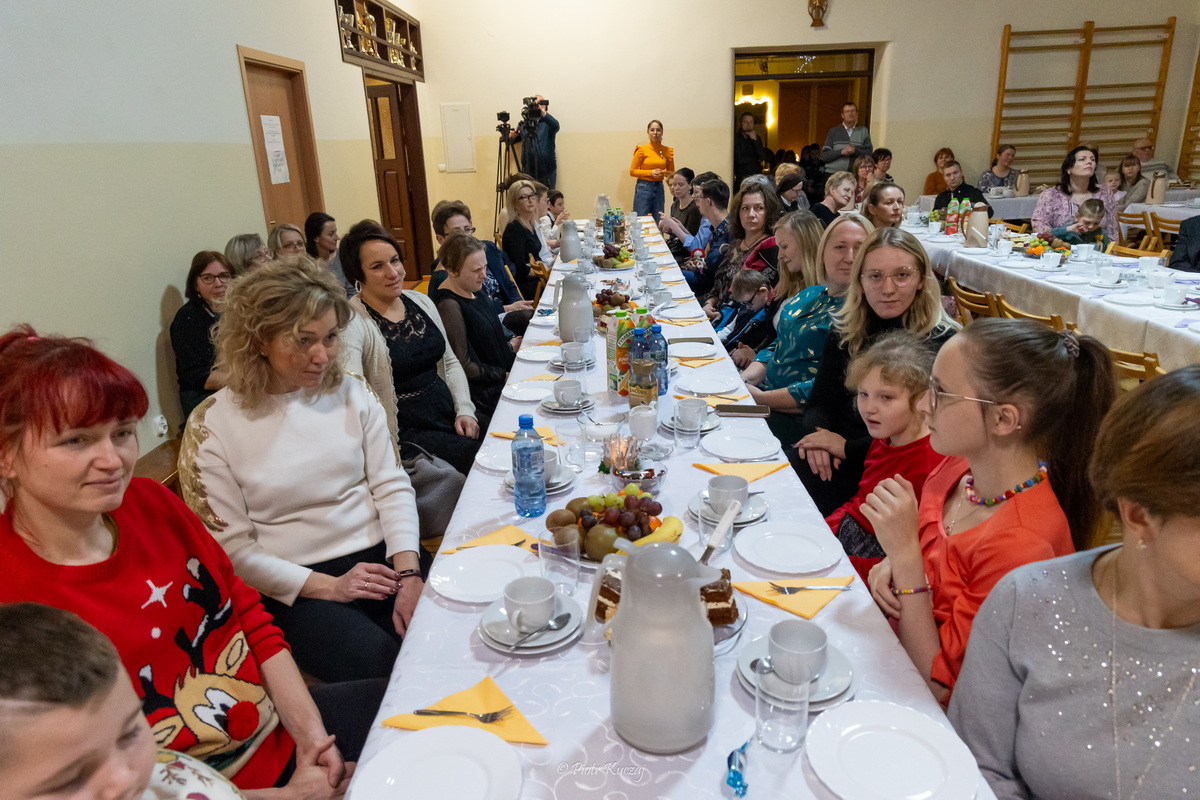 20 grudnia w naszym Ośrodku odbyło się piękne Spotkanie Opłatkowe. Przy wigilijnym stole spotkaliśmy się wspólnie wszyscy: uczniowie i absolwenci, rodzice, pracownicy naszej szkoły św. Tereski wraz z zaproszonymi Gośćmi. Wśród zaproszonych gości byli: ks. Proboszcz Dariusz Pacula, goście z Lasek: p. Paweł Kacprzyk – prezes Towarzystwa Opieki nad Ociemniałymi Stowarzyszenie, p. Kamila Miler – Zdanowska – dyrektor Ośrodka Szkolno-Wychowawczego dla Dzieci Niewidomych w Laskach, p. Marek Szarawarski radny powiatu, p. wizytator Dorota Słońska – Halczak z Delegatury Kuratorium Oświaty w Nowym Targu, Siostry ze Zgromadzeń rabczańskich, lekarze – p. dr Ewa Szajner, p. dr Grażyna Pełka, p. dr Anna Gawron, przedstawiciele i dobroczyńcy różnych instytucji z którymi nasza szkoła współpracuje: p. Ewa Przybyło – prezes Związku Gmin, p. Bożena Sularz – vice przewodnicząca Stowarzyszenia na Rzecz Osób z Niepełnosprawnością Intelektualną, p. Marta Augustyn – komendant Hufca w Skomielnej-Białej, p. Jan Wójciak – Transmarino, p. Małgorzata Baliczek- Kojs – restauracja Kabanos, p. Anna Czapnik Wójcik i Jan Olszyński – Fundacja Kinematograf.