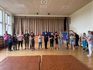 30 maja 2025 roku w naszej szkole przeżyliśmy słodką przygodę, podczas której odkrywaliśmy tajemnice czekolady dubajskiej. Dowiedzieliśmy się, że ten przysmak łączy w sobie wysokiej jakości czekoladę z chrupiącym ciastem kataifi i kremem pistacjowym. Podczas warsztatów samodzielnie przygotowywaliśmy słodkości, wypełniając foremki płynną czekoladą i nadzieniem. Po degustacji czekały na nas kolejne atrakcje z okazji Dnia Dziecka – zabawy i tańce integracyjne. Wykonaliśmy też wspólne dzieło plastyczne – odrysowaliśmy nasze dłonie na płótnie, tworząc niepowtarzalną pamiątkę tego dnia. Był to dzień pełen słodkich smaków, radości i twórczej współpracy!