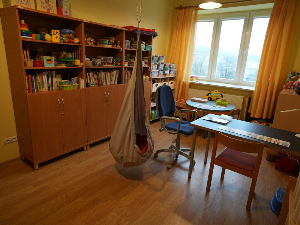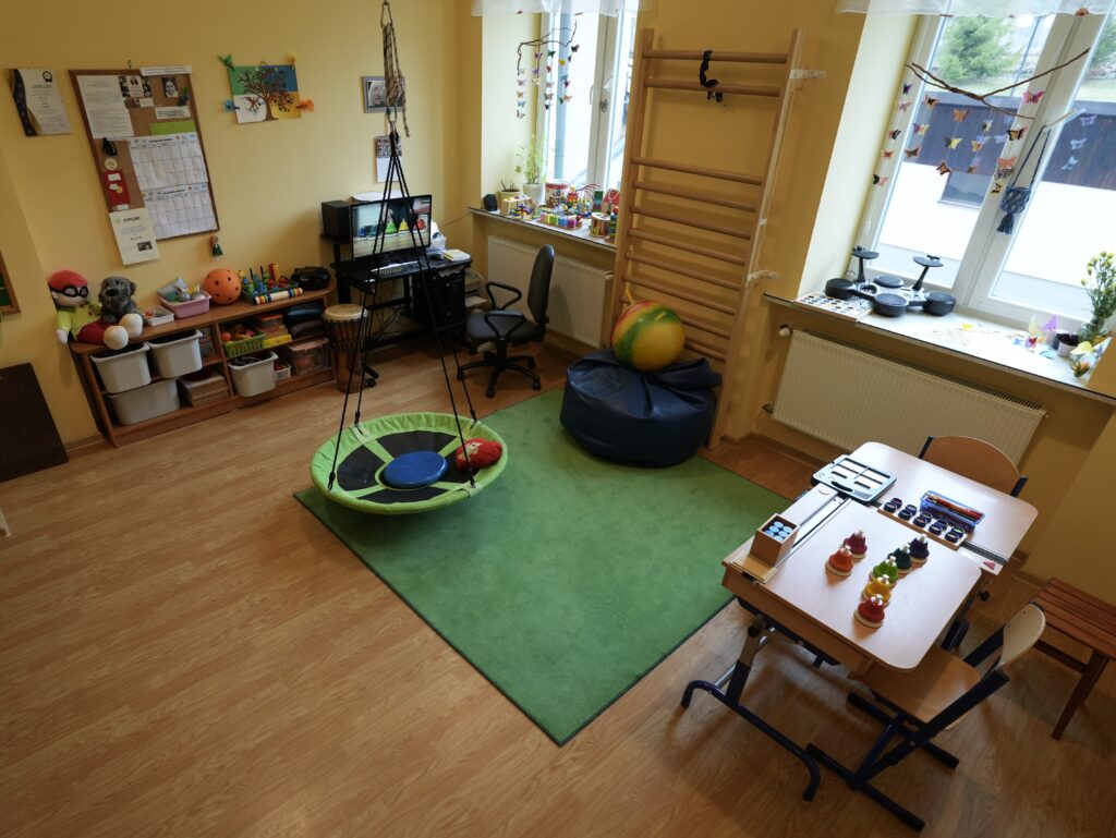 • Przestrzeń do integracji sensorycznej, umożliwiająca terapię z wykorzystaniem różnorodnych bodźców wspierających rozwój zmysłów.