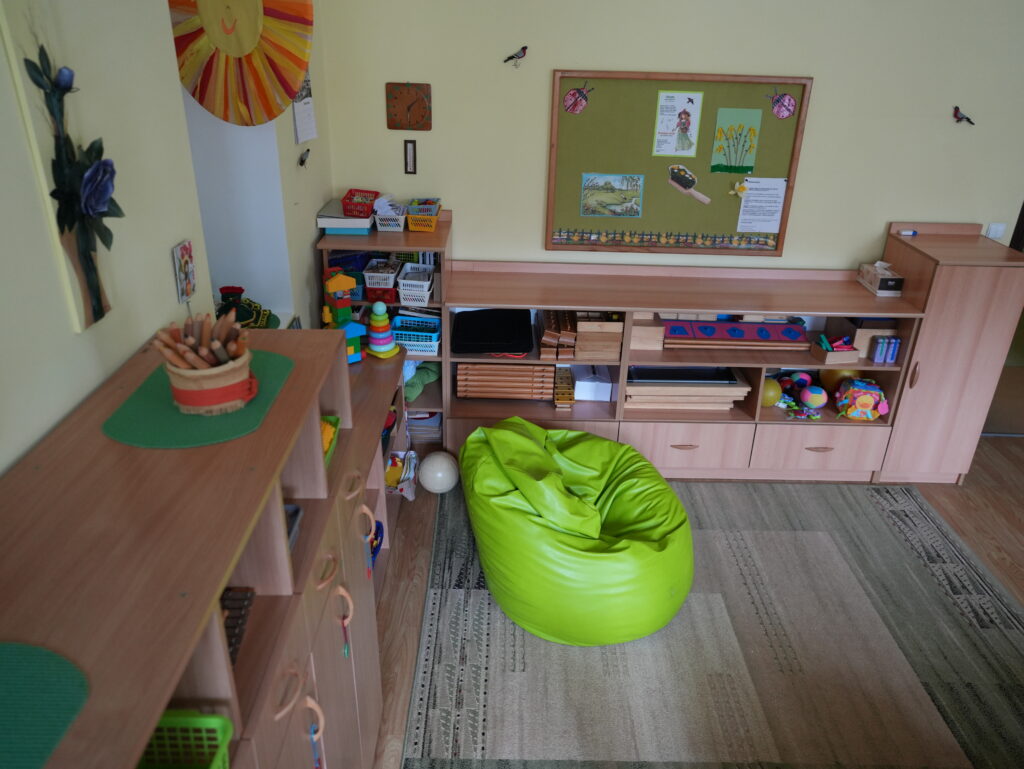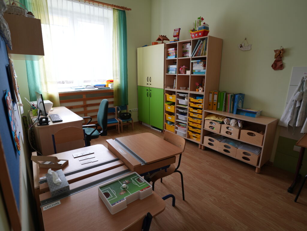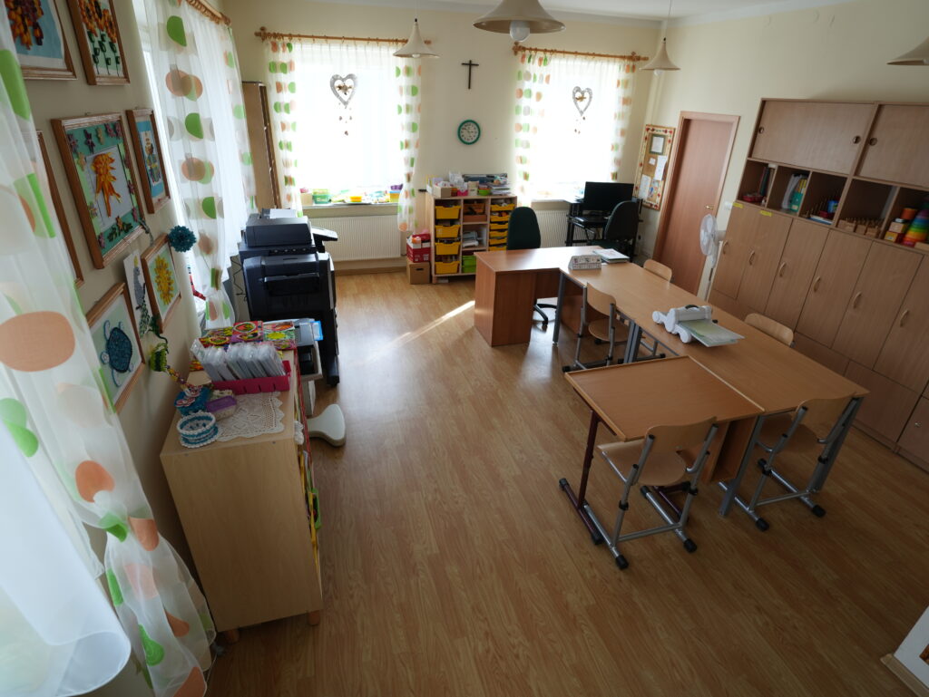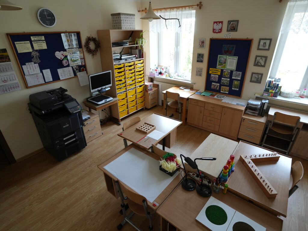 • Przestronne sale lekcyjne z regulowanymi stołami i krzesłami, bogato wyposażone w materiały wspierające rozwój umiejętności praktycznych i społecznych, w tym sprzęt multimedialny, materiały plastyczne, narzędzia i przybory do różnorodnych technik artystycznych.