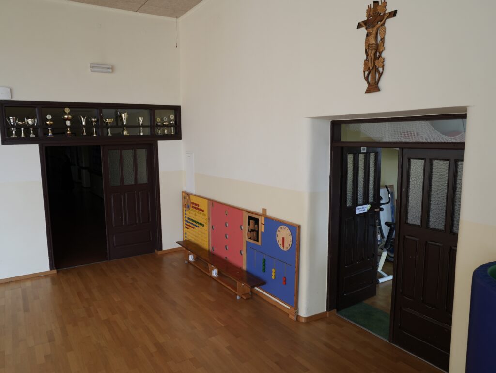 • Sala gimnastyczna przystosowana do zajęć wychowania fizycznego oraz gier zespołowych.